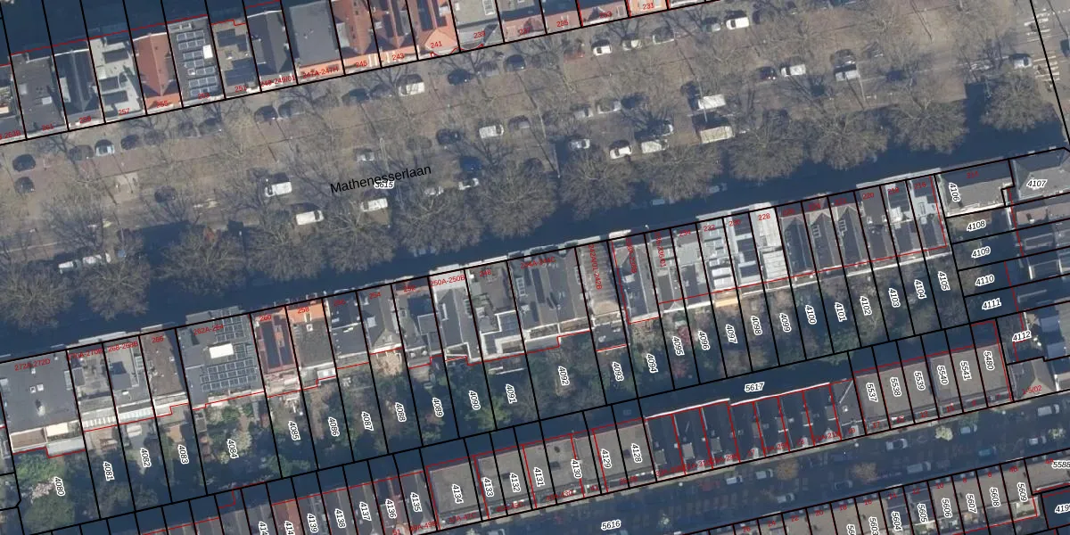 Het perceel waarop Mathenesserlaan 244-B staat heeft een oppervlakte van 395 m². Dit is een groot perceel. De perceeloppervlakte wordt geregistreerd door het Kadaster. Gedetailleerde informatie over de maten van dit perceel kunt u vinden in het rapport Kadastrale kaart met maatvoering van Mathenesserlaan 244-B.