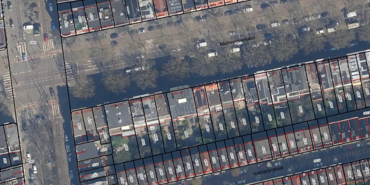 Mathenesserlaan 262-A is gelegen op kadastraal perceel DHV00C4084. Deze kadastrale aanduiding is uniek en wordt gebruikt door het Kadaster om eigendomsrechten en andere zakelijke rechten vast te leggen. Het perceel maakt onderdeel uit van de kadastrale gemeente Delfshaven.