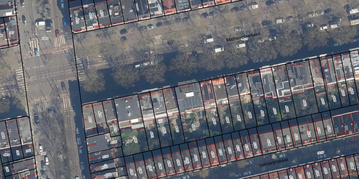 Het perceel waarop Mathenesserlaan 264 staat heeft een oppervlakte van 444 m². Dit is een groot perceel. De perceeloppervlakte wordt geregistreerd door het Kadaster. Gedetailleerde informatie over de maten van dit perceel kunt u vinden in het rapport Kadastrale kaart met maatvoering van Mathenesserlaan 264.