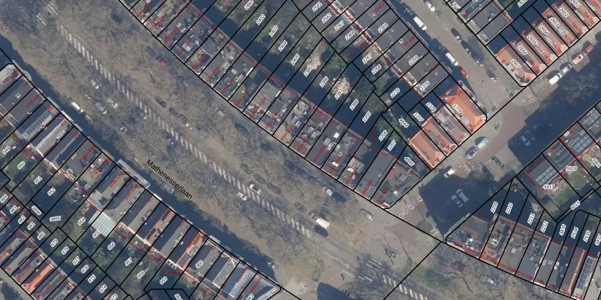 Mathenesserlaan 407-A is gelegen op kadastraal perceel DHV00C2387. Deze kadastrale aanduiding is uniek en wordt gebruikt door het Kadaster om eigendomsrechten en andere zakelijke rechten vast te leggen. Het perceel maakt onderdeel uit van de kadastrale gemeente Delfshaven.