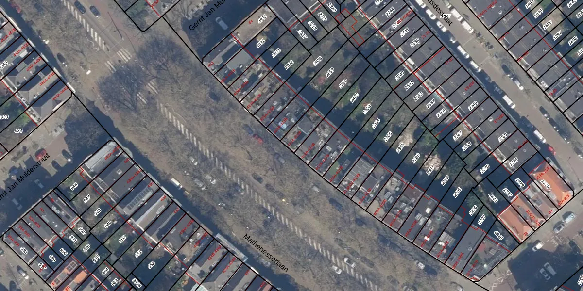 Mathenesserlaan 421-A is gelegen op kadastraal perceel DHV00C2860. Deze kadastrale aanduiding is uniek en wordt gebruikt door het Kadaster om eigendomsrechten en andere zakelijke rechten vast te leggen. Het perceel maakt onderdeel uit van de kadastrale gemeente Delfshaven.