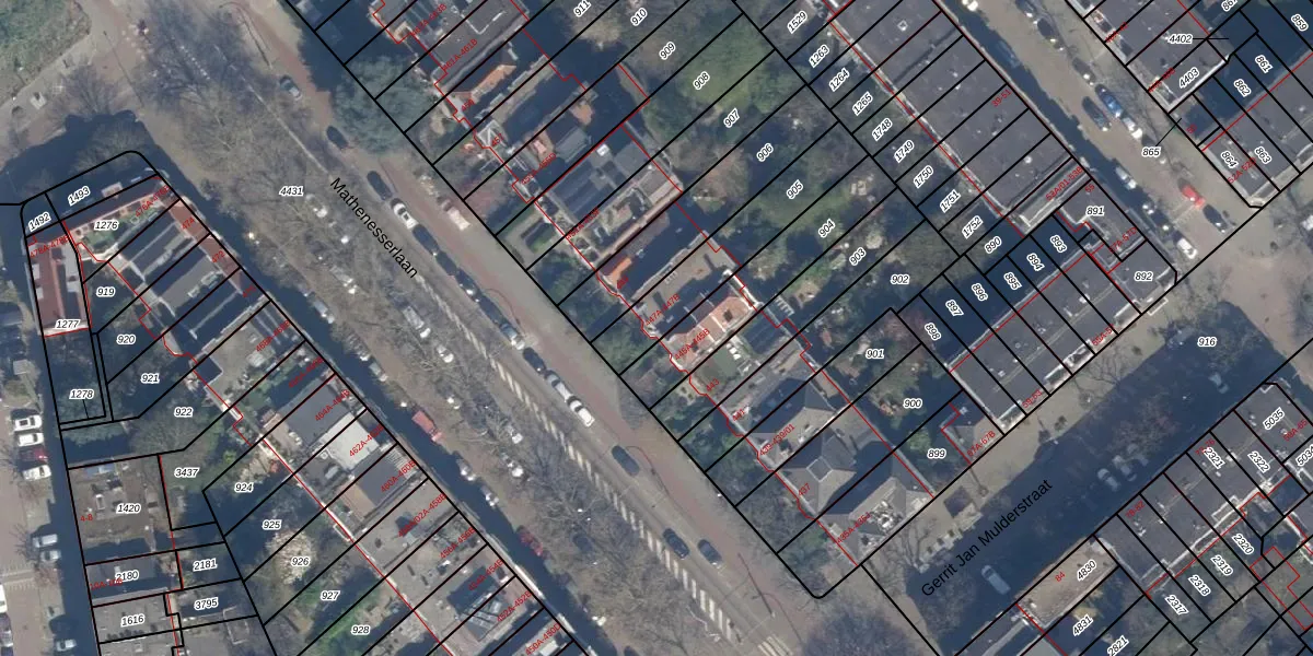 Het perceel waarop Mathenesserlaan 447-B staat heeft een oppervlakte van 343 m². Dit is een groot perceel. De perceeloppervlakte wordt geregistreerd door het Kadaster. Gedetailleerde informatie over de maten van dit perceel kunt u vinden in het rapport Kadastrale kaart met maatvoering van Mathenesserlaan 447-B.