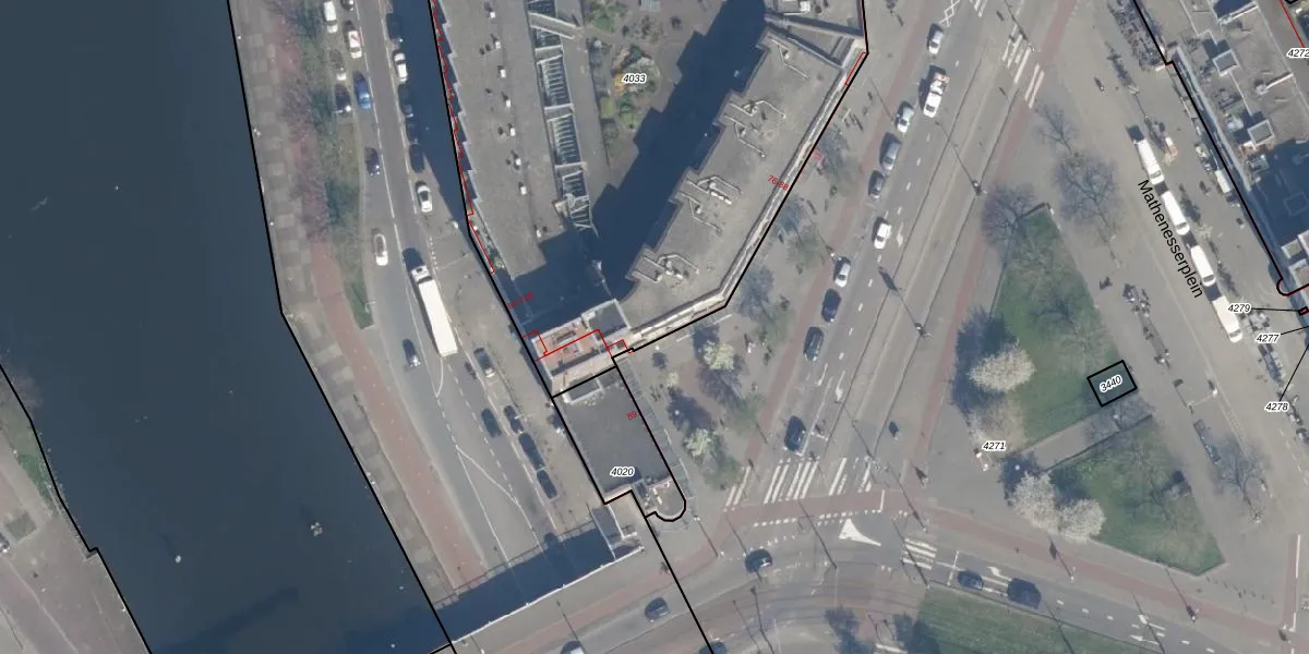 Het adres ligt op het perceel DHV00-I-4033, dat zich in de kadastrale gemeente Delfshaven bevindt. Het perceel is met 6253 m² relatief groot. Het gemiddelde ligt in de kadastrale gemeente Delfshaven op 628,61 m². Het grootste perceel in de kadastrale gemeente is 22,2 ha. Het kleinste perceel heeft een oppervlakte van 0 m². Er zijn 109 adressen aanwezig op het perceel. De huidige grenzen van het perceel zijn digitaal in de Basisregistratie Kadaster (BRK) geregistreerd op 24-07-2006.