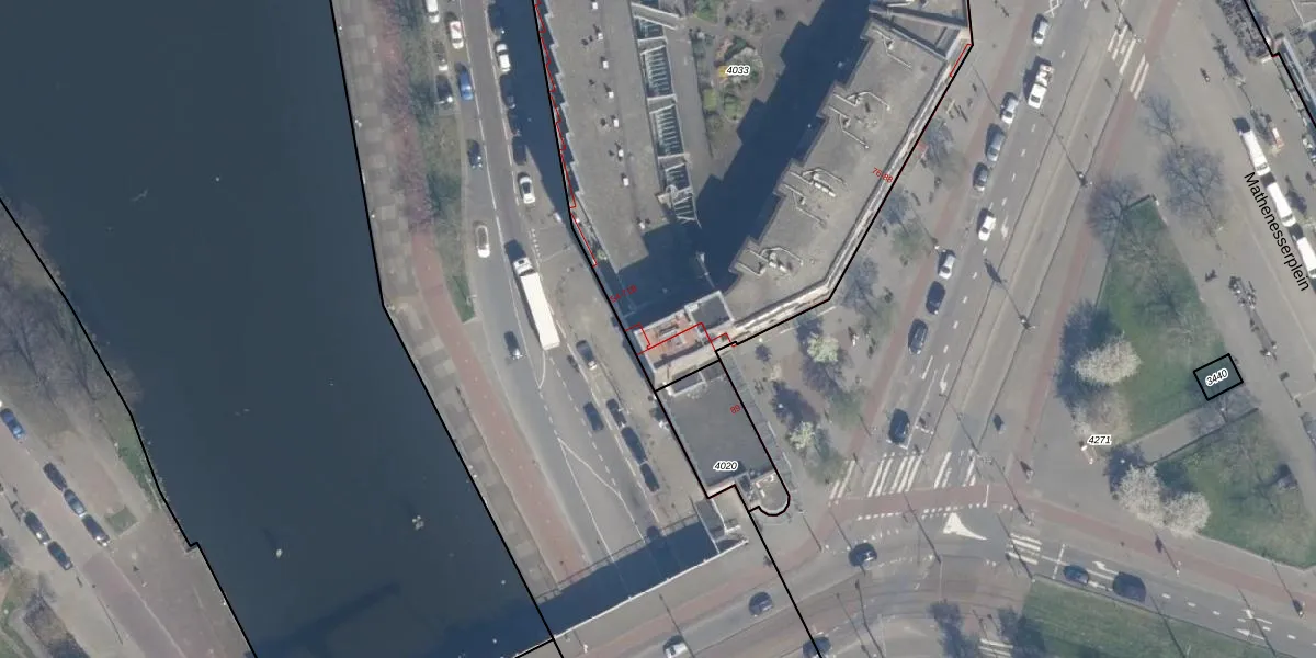Het perceel waarop Mathenesserplein 88 staat heeft een oppervlakte van 6253 m². Dit is een zeer groot perceel. De perceeloppervlakte wordt geregistreerd door het Kadaster. Gedetailleerde informatie over de maten van dit perceel kunt u vinden in het rapport Kadastrale kaart met maatvoering van Mathenesserplein 88.