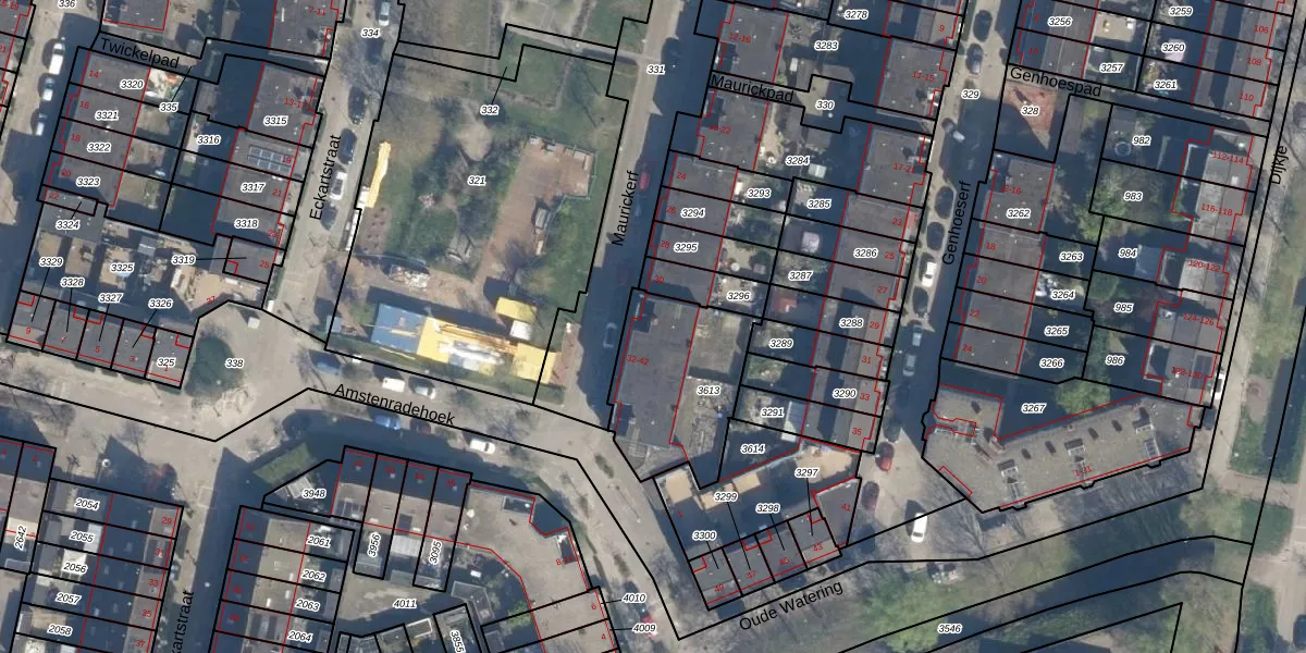Het perceel waarop Maurickerf 36 staat heeft een oppervlakte van 485 m². Dit is een groot perceel. De perceeloppervlakte wordt geregistreerd door het Kadaster. Gedetailleerde informatie over de maten van dit perceel kunt u vinden in het rapport Kadastrale kaart met maatvoering van Maurickerf 36.
