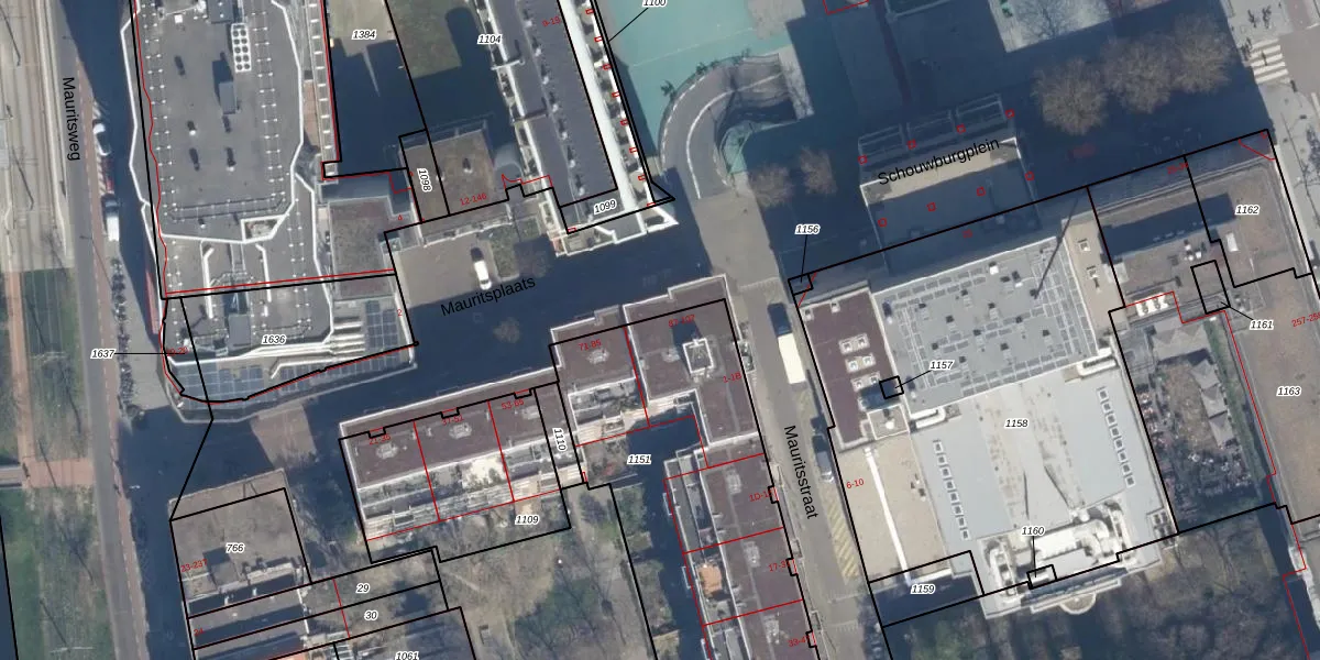 Het perceel waarop Mauritsplaats 105 staat heeft een oppervlakte van 1915 m². Dit is een zeer groot perceel. De perceeloppervlakte wordt geregistreerd door het Kadaster. Gedetailleerde informatie over de maten van dit perceel kunt u vinden in het rapport Kadastrale kaart met maatvoering van Mauritsplaats 105.