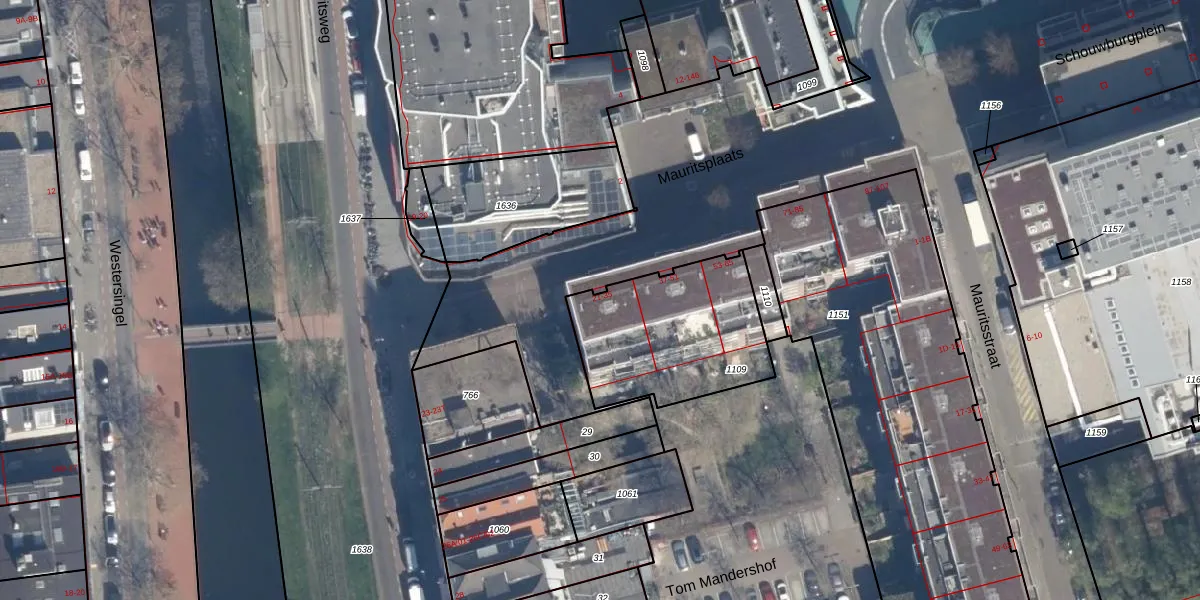 Het perceel waarop Mauritsplaats 35 staat heeft een oppervlakte van 635 m². Dit is een groot perceel. De perceeloppervlakte wordt geregistreerd door het Kadaster. Gedetailleerde informatie over de maten van dit perceel kunt u vinden in het rapport Kadastrale kaart met maatvoering van Mauritsplaats 35.