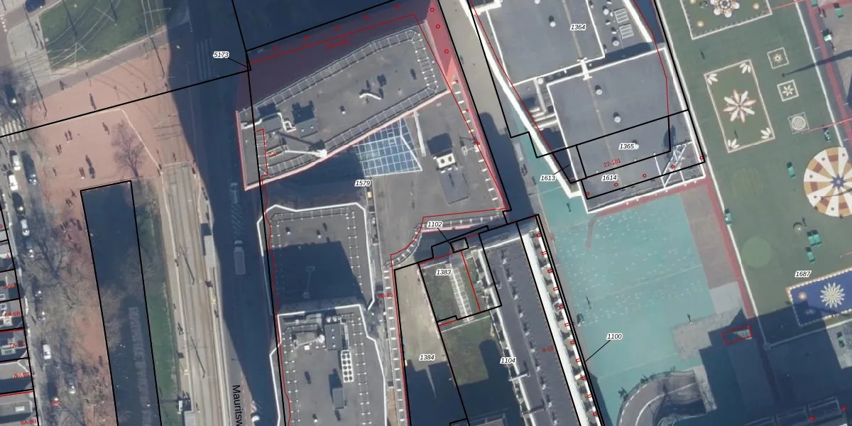 Het perceel waarop Mauritsplaats 4 staat heeft een oppervlakte van 4893 m². Dit is een zeer groot perceel. De perceeloppervlakte wordt geregistreerd door het Kadaster. Gedetailleerde informatie over de maten van dit perceel kunt u vinden in het rapport Kadastrale kaart met maatvoering van Mauritsplaats 4.