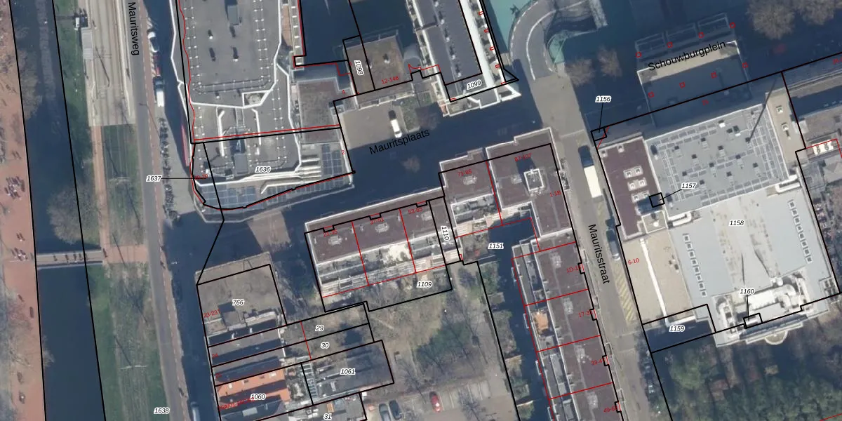 Het perceel waarop Mauritsplaats 59 staat heeft een oppervlakte van 635 m². Dit is een groot perceel. De perceeloppervlakte wordt geregistreerd door het Kadaster. Gedetailleerde informatie over de maten van dit perceel kunt u vinden in het rapport Kadastrale kaart met maatvoering van Mauritsplaats 59.