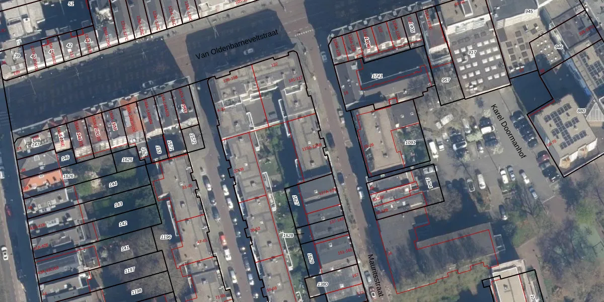 Het perceel waarop Mauritsstraat 123-A staat heeft een oppervlakte van 2800 m². Dit is een zeer groot perceel. De perceeloppervlakte wordt geregistreerd door het Kadaster. Gedetailleerde informatie over de maten van dit perceel kunt u vinden in het rapport Kadastrale kaart met maatvoering van Mauritsstraat 123-A.
