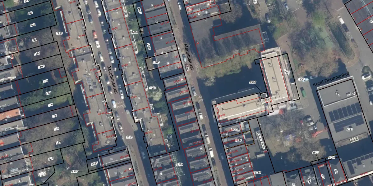 Het perceel waarop Mauritsstraat 183 staat heeft een oppervlakte van 1320 m². Dit is een zeer groot perceel. De perceeloppervlakte wordt geregistreerd door het Kadaster. Gedetailleerde informatie over de maten van dit perceel kunt u vinden in het rapport Kadastrale kaart met maatvoering van Mauritsstraat 183.