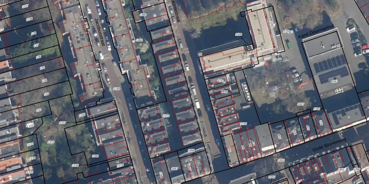 Het perceel waarop het adres ligt is RTD04-AF-1379. De afkorting 'RTD04' staat voor kadastrale gemeente Rotterdam. De oppervlakte van het perceel is 1320 m². Dat is groter dan gemiddeld in Rotterdam, waar de gemiddelde perceeloppervlakte op 1239,97 m² ligt. De grootste perceeloppervlakte in de kadastrale gemeente is 17,3 ha. De kleinste oppervlakte bedraagt 0 m². Er zijn 78 adressen aanwezig op het perceel. De huidige grenzen van het perceel zijn digitaal in de Basisregistratie Kadaster (BRK) geregistreerd op 12-07-2018.