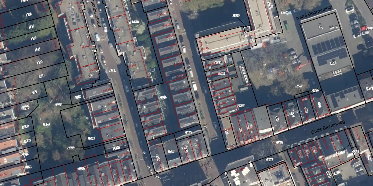 Het perceel waarop het adres ligt is RTD04-AF-1379. De afkorting 'RTD04' staat voor kadastrale gemeente Rotterdam. De oppervlakte van het perceel is 1320 m². Dat is groter dan gemiddeld in Rotterdam, waar de gemiddelde perceeloppervlakte op 1239,97 m² ligt. De grootste perceeloppervlakte in de kadastrale gemeente is 17,3 ha. De kleinste oppervlakte bedraagt 0 m². Op het perceel liggen in totaal 78 adressen. De laatste wijziging in het de Basisregistratie Kadaster (BRK) was op 12-07-2018.