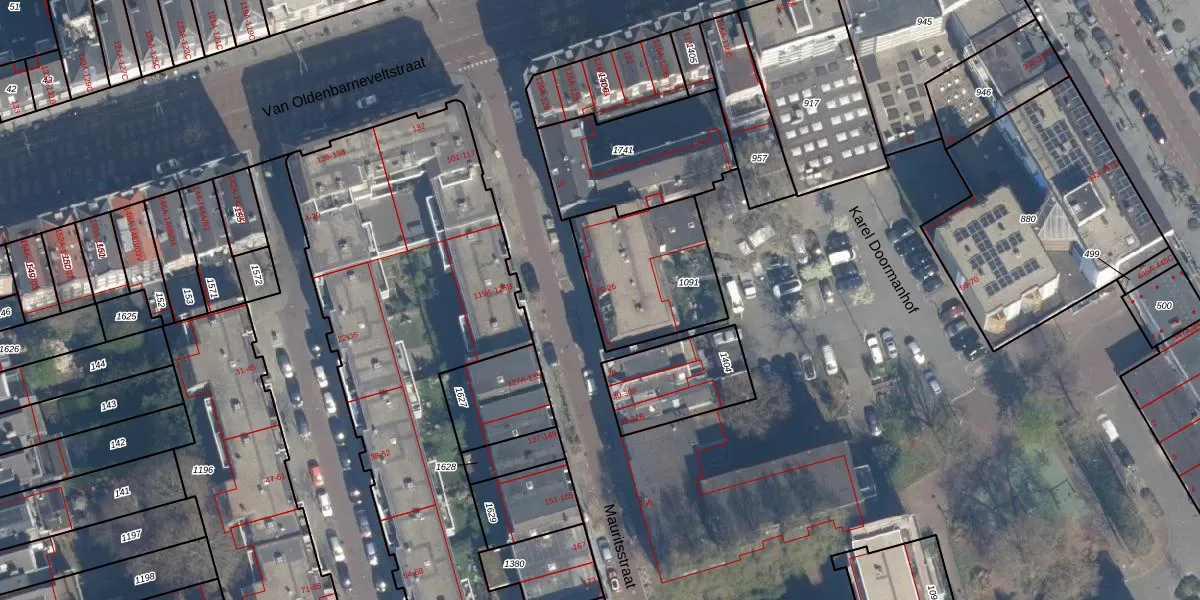 Het perceel waarop Mauritsstraat 24-D staat heeft een oppervlakte van 462 m². Dit is een groot perceel. De perceeloppervlakte wordt geregistreerd door het Kadaster. Gedetailleerde informatie over de maten van dit perceel kunt u vinden in het rapport Kadastrale kaart met maatvoering van Mauritsstraat 24-D.