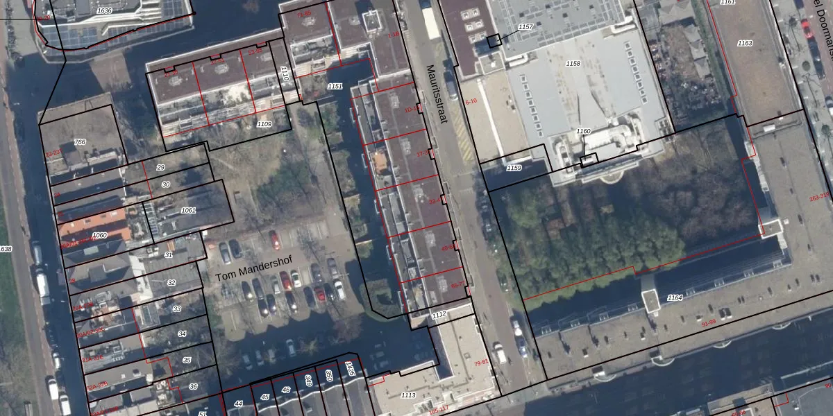 Het perceel waarop Mauritsstraat 41 staat heeft een oppervlakte van 1915 m². Dit is een zeer groot perceel. De perceeloppervlakte wordt geregistreerd door het Kadaster. Gedetailleerde informatie over de maten van dit perceel kunt u vinden in het rapport Kadastrale kaart met maatvoering van Mauritsstraat 41.