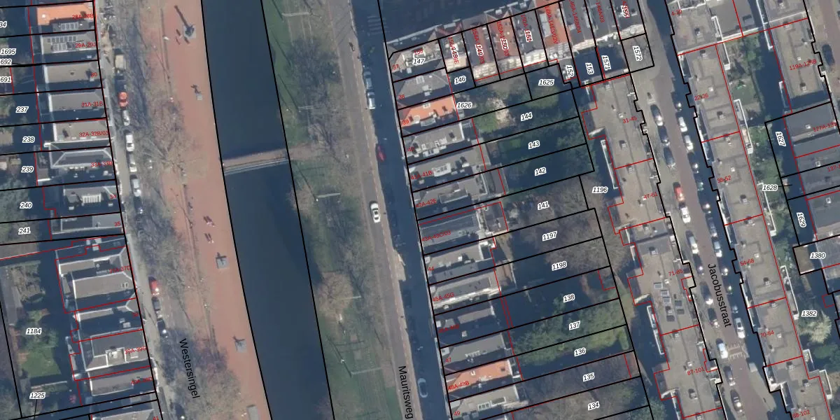 Mauritsweg 42-A is gelegen op kadastraal perceel RTD04AF142. Deze kadastrale aanduiding is uniek en wordt gebruikt door het Kadaster om eigendomsrechten en andere zakelijke rechten vast te leggen. Het perceel maakt onderdeel uit van de kadastrale gemeente Rotterdam.