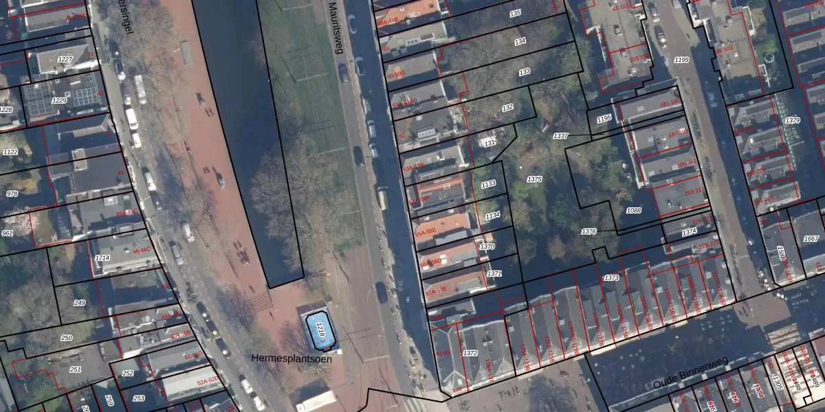 Het perceel waarop Mauritsweg 54-F staat heeft een oppervlakte van 198 m². Dit is een middelgroot perceel. De perceeloppervlakte wordt geregistreerd door het Kadaster. Gedetailleerde informatie over de maten van dit perceel kunt u vinden in het rapport Kadastrale kaart met maatvoering van Mauritsweg 54-F.