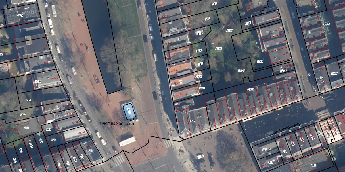 Het adres ligt op het perceel RTD04-AF-1370, dat zich in de kadastrale gemeente Rotterdam bevindt. De gemiddelde perceelgrootte in Rotterdam is 1239,97 m². Dit perceel is kleiner: de perceeloppervlakte bedraagt 165 m². Het kleinste perceel in de kadastrale gemeente is 0 m² groot. De grootste perceeloppervlakte is 17,3 ha. Op het perceel zijn 4 adressen aanwezig. In de Basisregistratie Kadaster (BRK) werden de grenzen van het perceel geregistreerd op 22-09-2009.