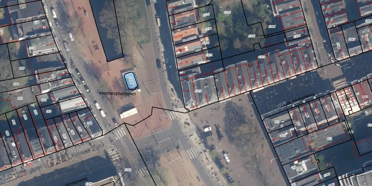 Het adres ligt op het perceel RTD04-AF-1372, dat zich in de kadastrale gemeente Rotterdam bevindt. De gemiddelde perceelgrootte in Rotterdam is 1240,47 m². Dit perceel is kleiner: de perceeloppervlakte bedraagt 440 m². De grootste perceeloppervlakte in de kadastrale gemeente is 17,3 ha. De kleinste oppervlakte bedraagt 0 m². Op het perceel liggen in totaal 13 adressen. De laatste wijziging in het de Basisregistratie Kadaster (BRK) was op 22-09-2009.