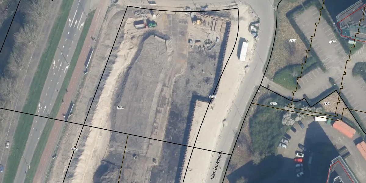 Het perceel waarop Max Euwelaan 13-A staat heeft een oppervlakte van 4465 m². Dit is een zeer groot perceel. De perceeloppervlakte wordt geregistreerd door het Kadaster. Gedetailleerde informatie over de maten van dit perceel kunt u vinden in het rapport Kadastrale kaart met maatvoering van Max Euwelaan 13-A.
