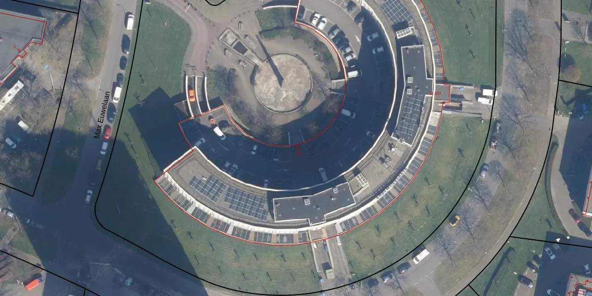 Het perceel waarop Max Euwelaan 78 staat heeft een oppervlakte van 1,6 ha. Dit is een zeer groot perceel. De perceeloppervlakte wordt geregistreerd door het Kadaster. Gedetailleerde informatie over de maten van dit perceel kunt u vinden in het rapport Kadastrale kaart met maatvoering van Max Euwelaan 78.