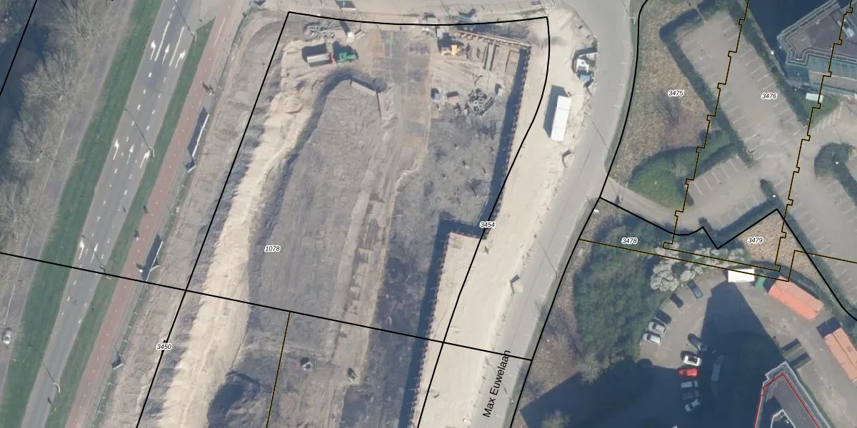 Het perceel waarop Max Euwelaan 9 staat heeft een oppervlakte van 4465 m². Dit is een zeer groot perceel. De perceeloppervlakte wordt geregistreerd door het Kadaster. Gedetailleerde informatie over de maten van dit perceel kunt u vinden in het rapport Kadastrale kaart met maatvoering van Max Euwelaan 9.