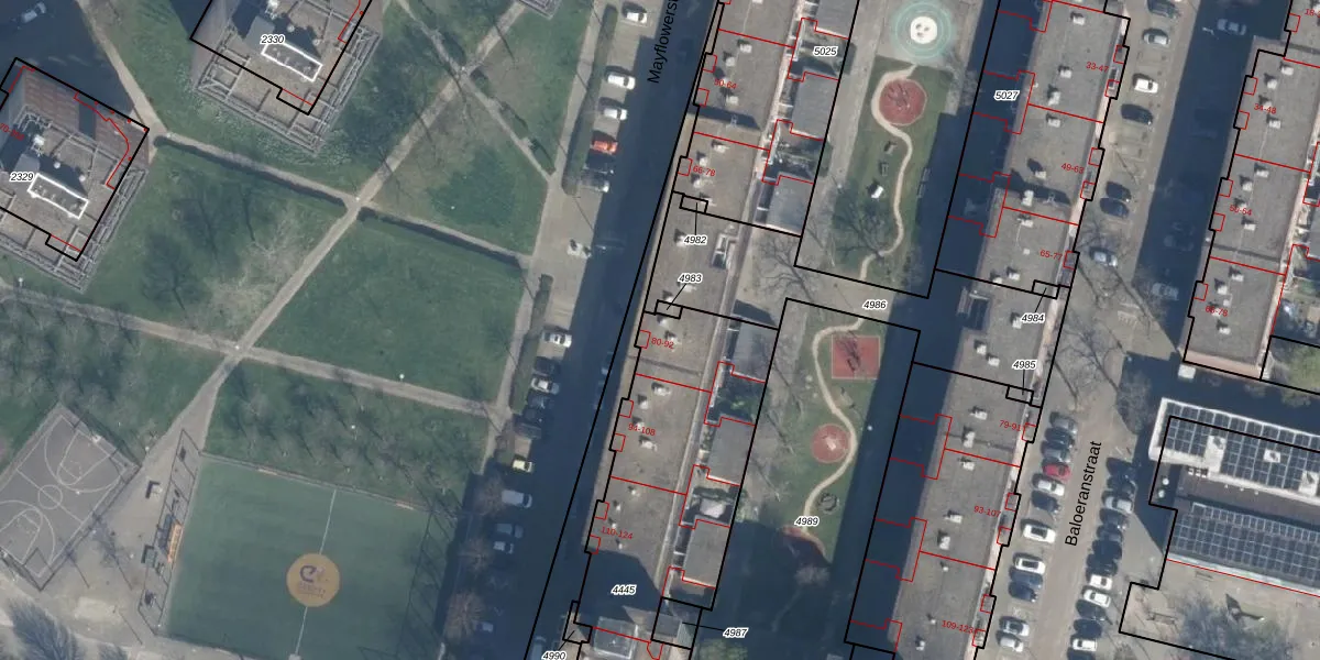 Mayflowerstraat 84 is gelegen op kadastraal perceel DHV00H4445. Deze kadastrale aanduiding is uniek en wordt gebruikt door het Kadaster om eigendomsrechten en andere zakelijke rechten vast te leggen. Het perceel maakt onderdeel uit van de kadastrale gemeente Delfshaven.