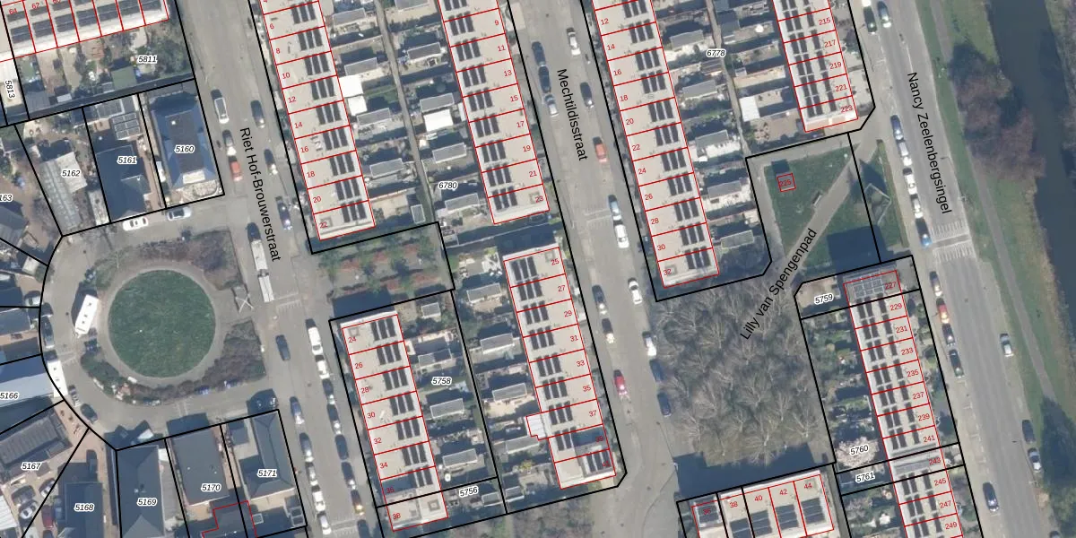 Het perceel waarop Mechtildisstraat 25 staat heeft een oppervlakte van 3639 m². Dit is een zeer groot perceel. De perceeloppervlakte wordt geregistreerd door het Kadaster. Gedetailleerde informatie over de maten van dit perceel kunt u vinden in het rapport Kadastrale kaart met maatvoering van Mechtildisstraat 25.