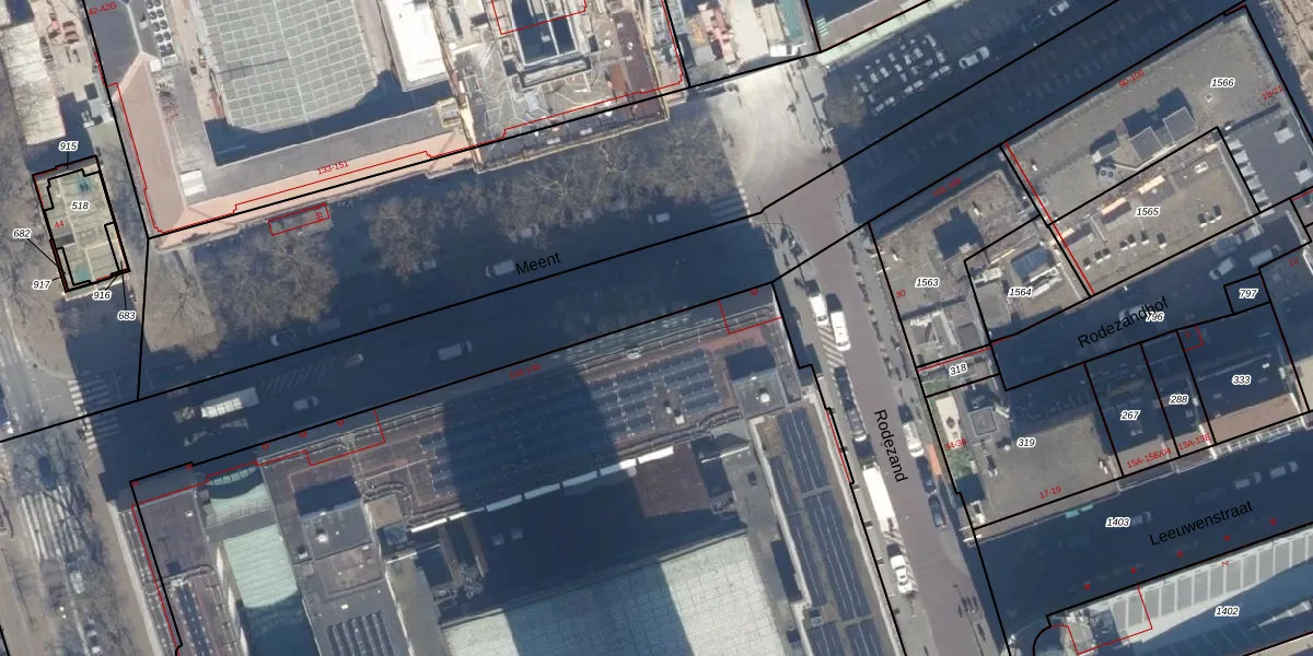 Meent 112 is gelegen op kadastraal perceel RTD04AF1357. Deze kadastrale aanduiding is uniek en wordt gebruikt door het Kadaster om eigendomsrechten en andere zakelijke rechten vast te leggen. Het perceel maakt onderdeel uit van de kadastrale gemeente Rotterdam.