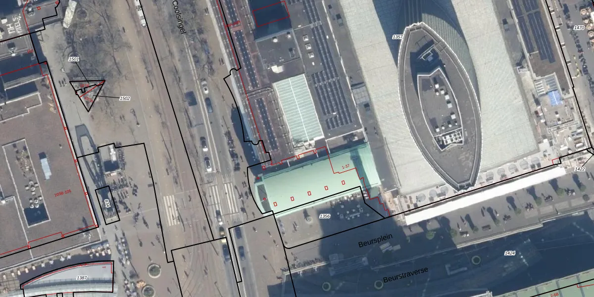 Het adres ligt op het perceel RTD04-AF-1357, dat zich in de kadastrale gemeente Rotterdam bevindt. De oppervlakte van het perceel is 1,3 ha. Dat is groter dan gemiddeld in Rotterdam, waar de gemiddelde perceeloppervlakte op 1239,97 m² ligt. Het grootste perceel in de kadastrale gemeente is 17,3 ha. Het kleinste perceel heeft een oppervlakte van 0 m². Er zijn 55 adressen aanwezig op het perceel. In de Basisregistratie Kadaster (BRK) werden de grenzen van het perceel geregistreerd op 22-09-2010.