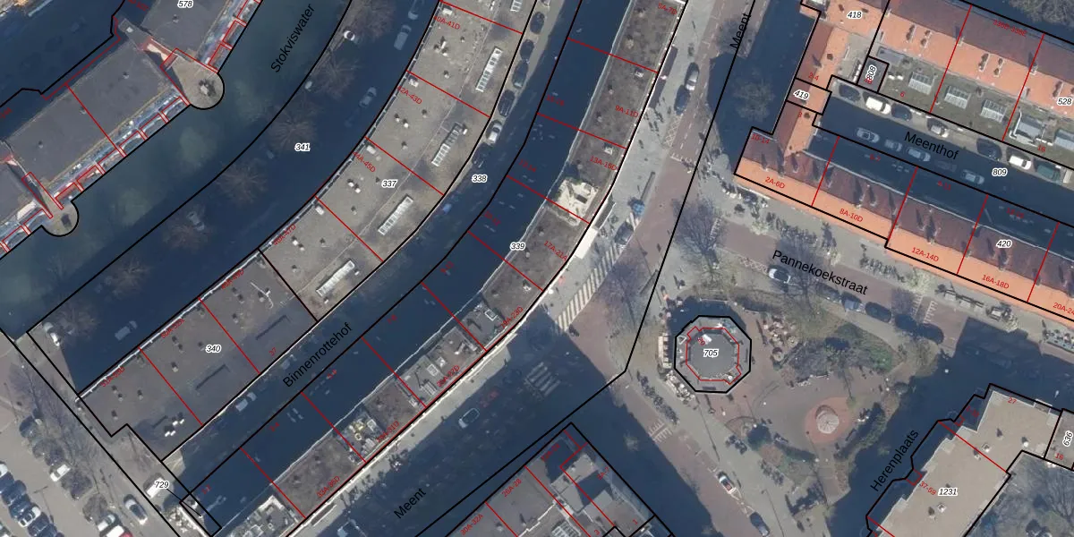 Meent 19-D is gelegen op kadastraal perceel RTD08AD339. Deze kadastrale aanduiding is uniek en wordt gebruikt door het Kadaster om eigendomsrechten en andere zakelijke rechten vast te leggen. Het perceel maakt onderdeel uit van de kadastrale gemeente Rotterdam.