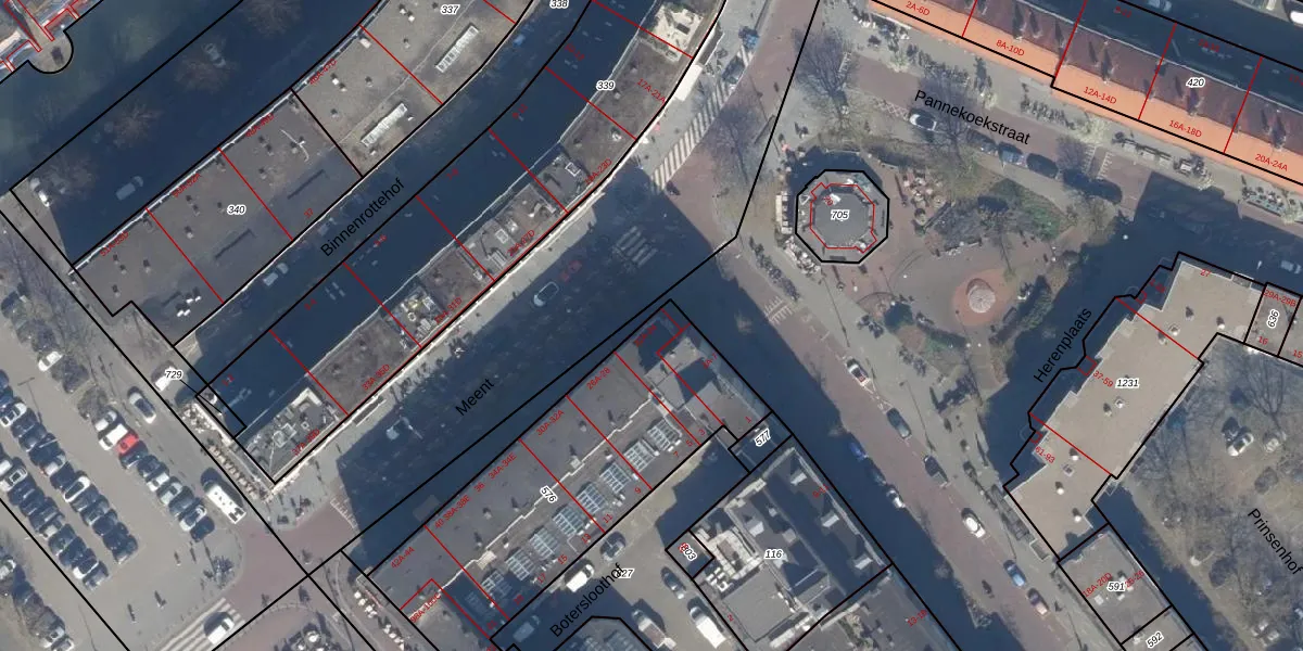 Meent 22-E is gelegen op kadastraal perceel RTD04AF576. Deze kadastrale aanduiding is uniek en wordt gebruikt door het Kadaster om eigendomsrechten en andere zakelijke rechten vast te leggen. Het perceel maakt onderdeel uit van de kadastrale gemeente Rotterdam.