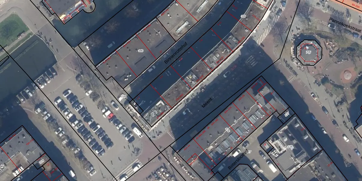 Meent 33-C is gelegen op kadastraal perceel RTD08AD339. Deze kadastrale aanduiding is uniek en wordt gebruikt door het Kadaster om eigendomsrechten en andere zakelijke rechten vast te leggen. Het perceel maakt onderdeel uit van de kadastrale gemeente Rotterdam.