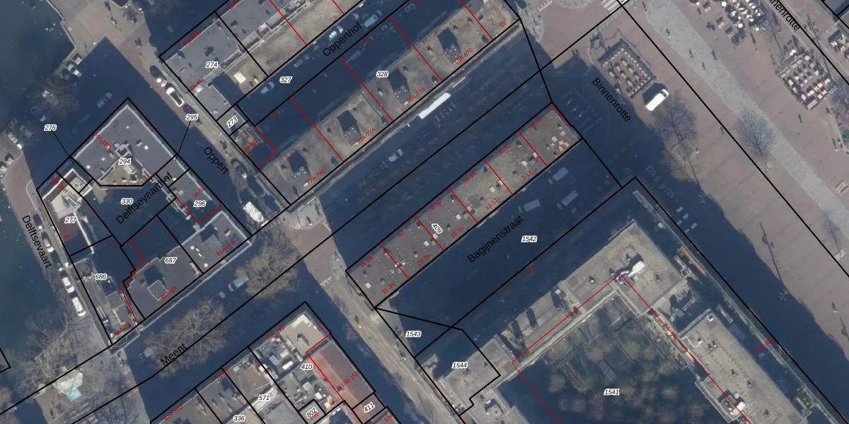 Het perceel waarop Meent 60 staat heeft een oppervlakte van 708 m². Dit is een groot perceel. De perceeloppervlakte wordt geregistreerd door het Kadaster. Gedetailleerde informatie over de maten van dit perceel kunt u vinden in het rapport Kadastrale kaart met maatvoering van Meent 60.