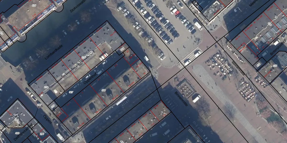 Het adres ligt op het perceel RTD08-AD-328, dat zich in de kadastrale gemeente Rotterdam bevindt. De gemiddelde perceeloppervlakte in de kadastrale gemeente Rotterdam is 689,2 m². Dit perceel is met zijn 1415 m² dus groter dan gemiddeld. De grootste perceeloppervlakte in de kadastrale gemeente is 4,0 ha. De kleinste oppervlakte bedraagt 0 m². Op het perceel liggen in totaal 59 adressen. In de Basisregistratie Kadaster (BRK) werden de grenzen van het perceel geregistreerd op 09-01-2003.