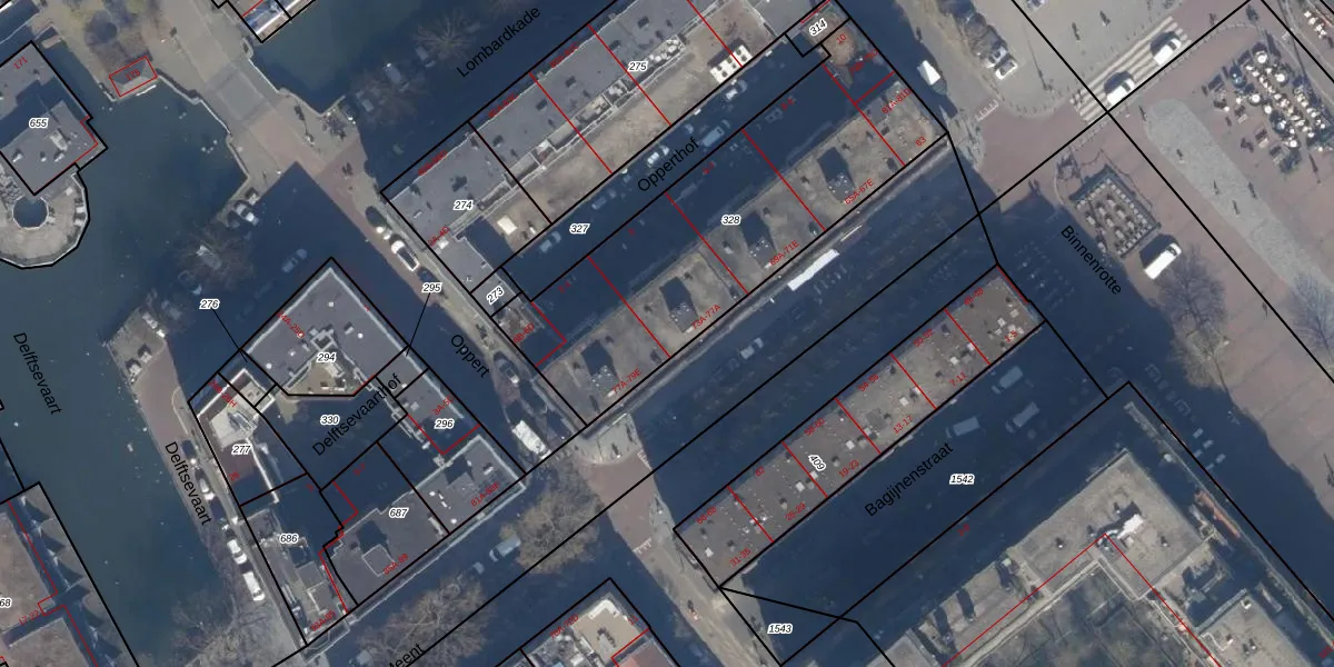 Het adres ligt op het perceel RTD08-AD-328, dat zich in de kadastrale gemeente Rotterdam bevindt. Het perceel is met 1415 m² relatief groot. Het gemiddelde ligt in de kadastrale gemeente Rotterdam op 689,2 m². De grootste perceeloppervlakte in de kadastrale gemeente is 4,0 ha. De kleinste oppervlakte bedraagt 0 m². Op het perceel zijn 59 adressen aanwezig. De huidige grenzen van het perceel zijn digitaal in de Basisregistratie Kadaster (BRK) geregistreerd op 09-01-2003.