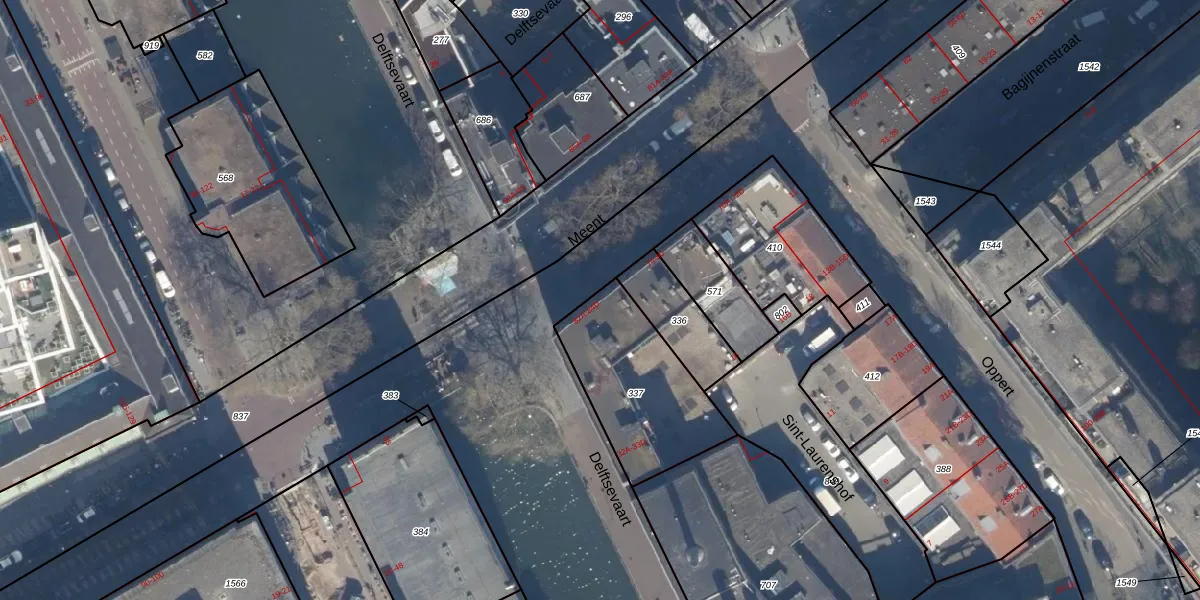 Het perceel waarop Meent 82-C staat heeft een oppervlakte van 510 m². Dit is een groot perceel. De perceeloppervlakte wordt geregistreerd door het Kadaster. Gedetailleerde informatie over de maten van dit perceel kunt u vinden in het rapport Kadastrale kaart met maatvoering van Meent 82-C.