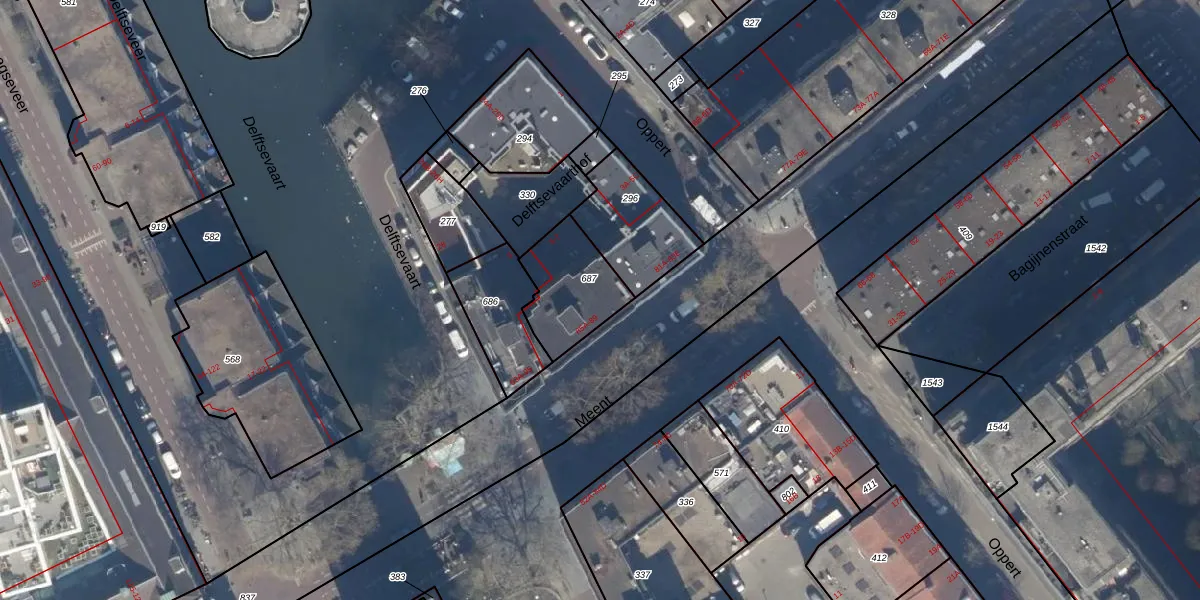 Meent 85-B is gelegen op kadastraal perceel RTD08AD687. Deze kadastrale aanduiding is uniek en wordt gebruikt door het Kadaster om eigendomsrechten en andere zakelijke rechten vast te leggen. Het perceel maakt onderdeel uit van de kadastrale gemeente Rotterdam.