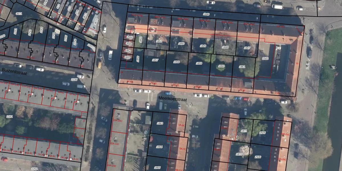 Meerkoetstraat 69 is gelegen op kadastraal perceel CLS00H1858. Deze kadastrale aanduiding is uniek en wordt gebruikt door het Kadaster om eigendomsrechten en andere zakelijke rechten vast te leggen. Het perceel maakt onderdeel uit van de kadastrale gemeente Charlois.