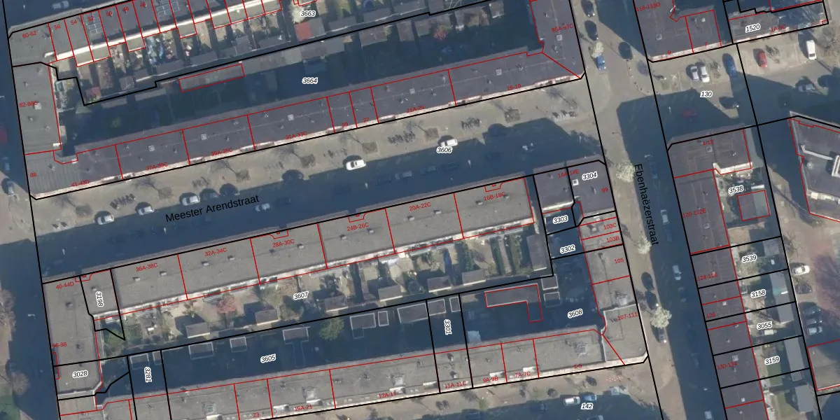 Meester Arendstraat 20-C is gelegen op kadastraal perceel CLS00H3607. Deze kadastrale aanduiding is uniek en wordt gebruikt door het Kadaster om eigendomsrechten en andere zakelijke rechten vast te leggen. Het perceel maakt onderdeel uit van de kadastrale gemeente Charlois.