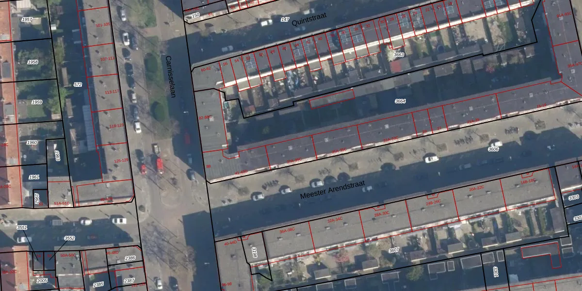 Het perceel waarop Meester Arendstraat 37-C staat heeft een oppervlakte van 3295 m². Dit is een zeer groot perceel. De perceeloppervlakte wordt geregistreerd door het Kadaster. Gedetailleerde informatie over de maten van dit perceel kunt u vinden in het rapport Kadastrale kaart met maatvoering van Meester Arendstraat 37-C.