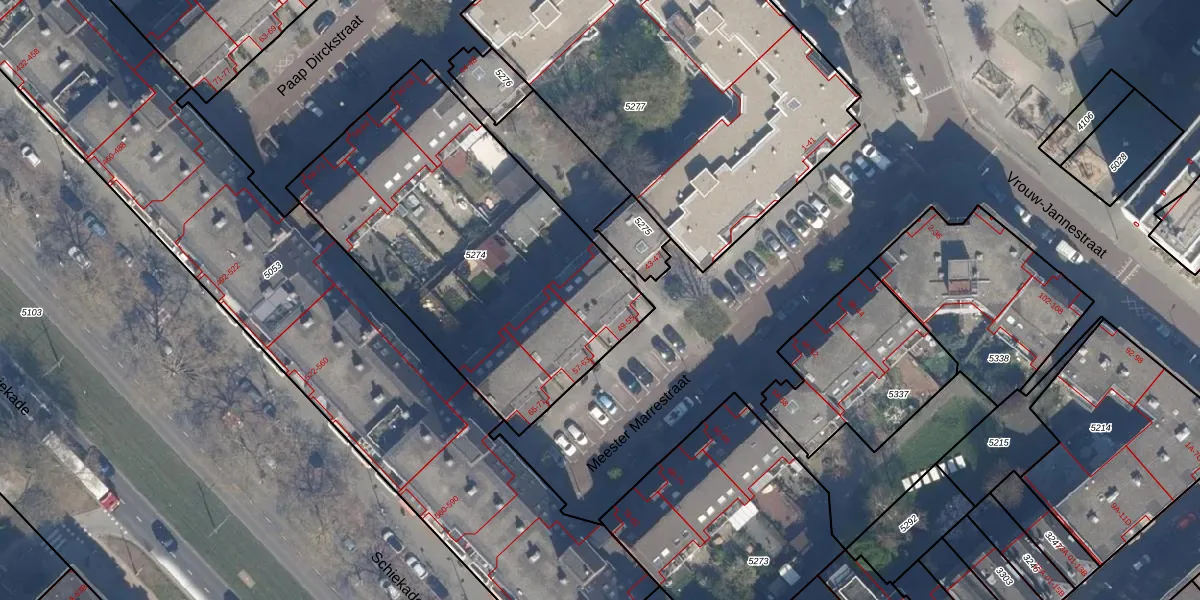 Meester Marrestraat 51 is gelegen op kadastraal perceel RTD08X5274. Deze kadastrale aanduiding is uniek en wordt gebruikt door het Kadaster om eigendomsrechten en andere zakelijke rechten vast te leggen. Het perceel maakt onderdeel uit van de kadastrale gemeente Rotterdam.