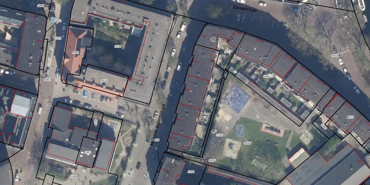 Meester Willemstraat 44 is gelegen op kadastraal perceel RTD09Y5616. Deze kadastrale aanduiding is uniek en wordt gebruikt door het Kadaster om eigendomsrechten en andere zakelijke rechten vast te leggen. Het perceel maakt onderdeel uit van de kadastrale gemeente Rotterdam.