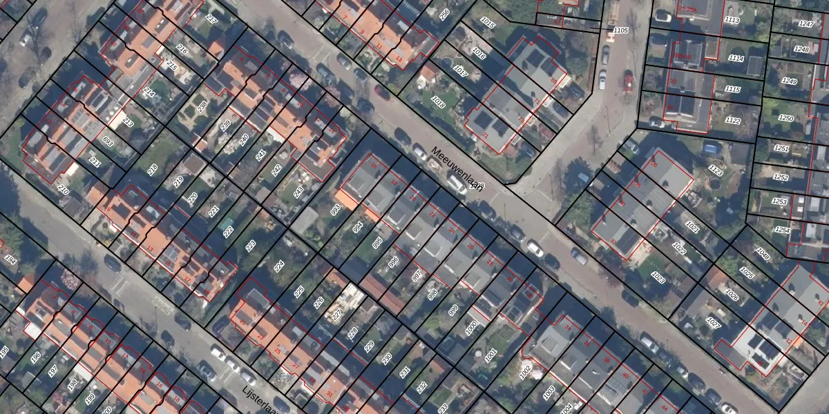 Het perceel waarop Meeuwenlaan 20 staat heeft een oppervlakte van 191 m². Dit is een middelgroot perceel. De perceeloppervlakte wordt geregistreerd door het Kadaster. Gedetailleerde informatie over de maten van dit perceel kunt u vinden in het rapport Kadastrale kaart met maatvoering van Meeuwenlaan 20.