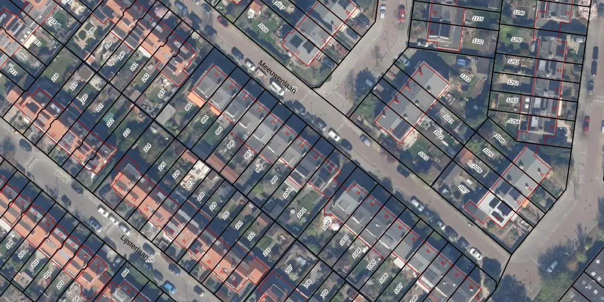 Het perceel waarop Meeuwenlaan 28 staat heeft een oppervlakte van 191 m². Dit is een middelgroot perceel. De perceeloppervlakte wordt geregistreerd door het Kadaster. Gedetailleerde informatie over de maten van dit perceel kunt u vinden in het rapport Kadastrale kaart met maatvoering van Meeuwenlaan 28.