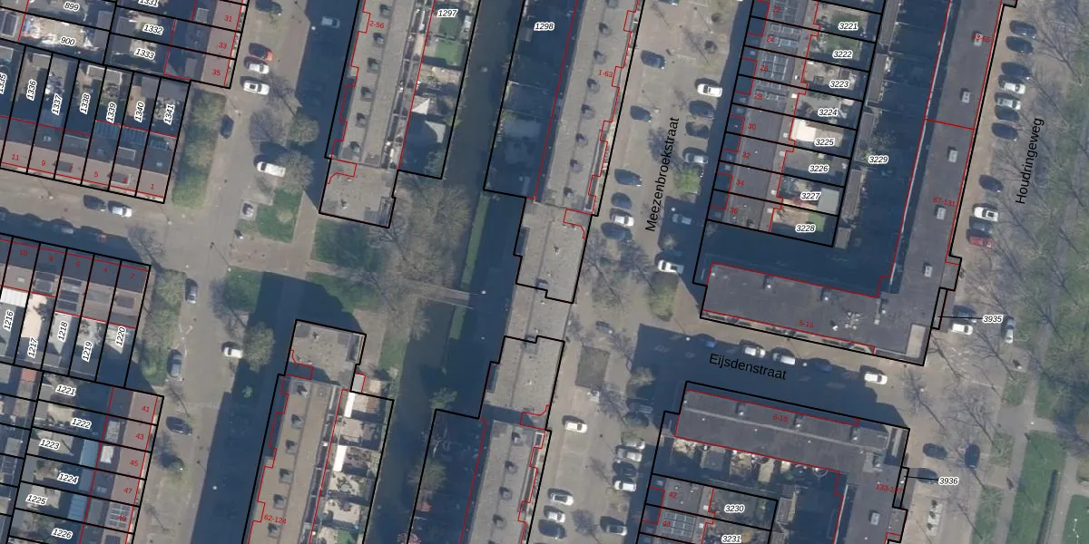Het perceel waarop Meezenbroekstraat 63 staat heeft een oppervlakte van 1643 m². Dit is een zeer groot perceel. De perceeloppervlakte wordt geregistreerd door het Kadaster. Gedetailleerde informatie over de maten van dit perceel kunt u vinden in het rapport Kadastrale kaart met maatvoering van Meezenbroekstraat 63.