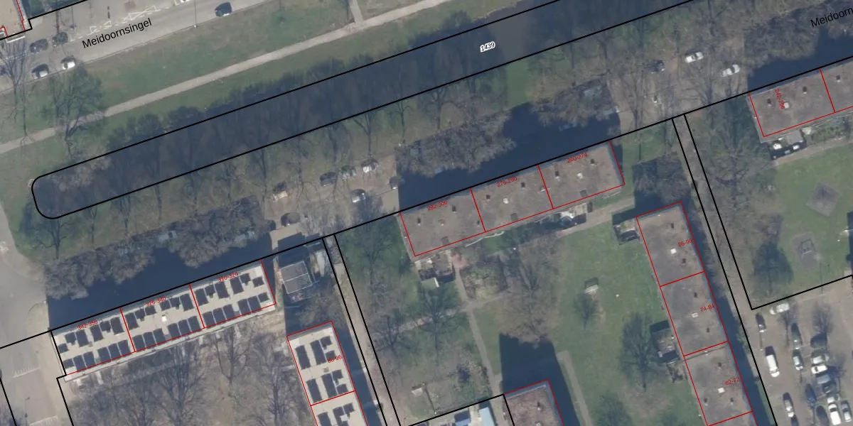 Het perceel waarop Meidoornsingel 302 staat heeft een oppervlakte van 1,0 ha. Dit is een zeer groot perceel. De perceeloppervlakte wordt geregistreerd door het Kadaster. Gedetailleerde informatie over de maten van dit perceel kunt u vinden in het rapport Kadastrale kaart met maatvoering van Meidoornsingel 302.
