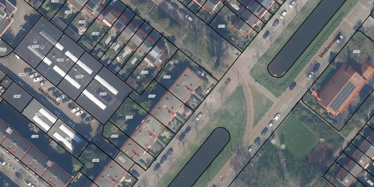 Het perceel waarop Meidoornsingel 85-A staat heeft een oppervlakte van 584 m². Dit is een groot perceel. De perceeloppervlakte wordt geregistreerd door het Kadaster. Gedetailleerde informatie over de maten van dit perceel kunt u vinden in het rapport Kadastrale kaart met maatvoering van Meidoornsingel 85-A.