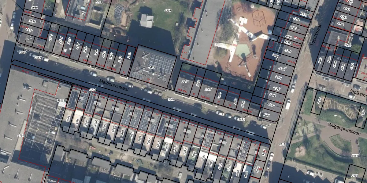 Meidoornstraat 45-A is gelegen op kadastraal perceel RTD07W2645. Deze kadastrale aanduiding is uniek en wordt gebruikt door het Kadaster om eigendomsrechten en andere zakelijke rechten vast te leggen. Het perceel maakt onderdeel uit van de kadastrale gemeente Rotterdam.