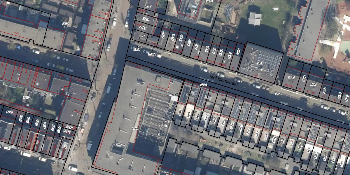 Meidoornstraat 46 is gelegen op kadastraal perceel RTD07W5796. Deze kadastrale aanduiding is uniek en wordt gebruikt door het Kadaster om eigendomsrechten en andere zakelijke rechten vast te leggen. Het perceel maakt onderdeel uit van de kadastrale gemeente Rotterdam.